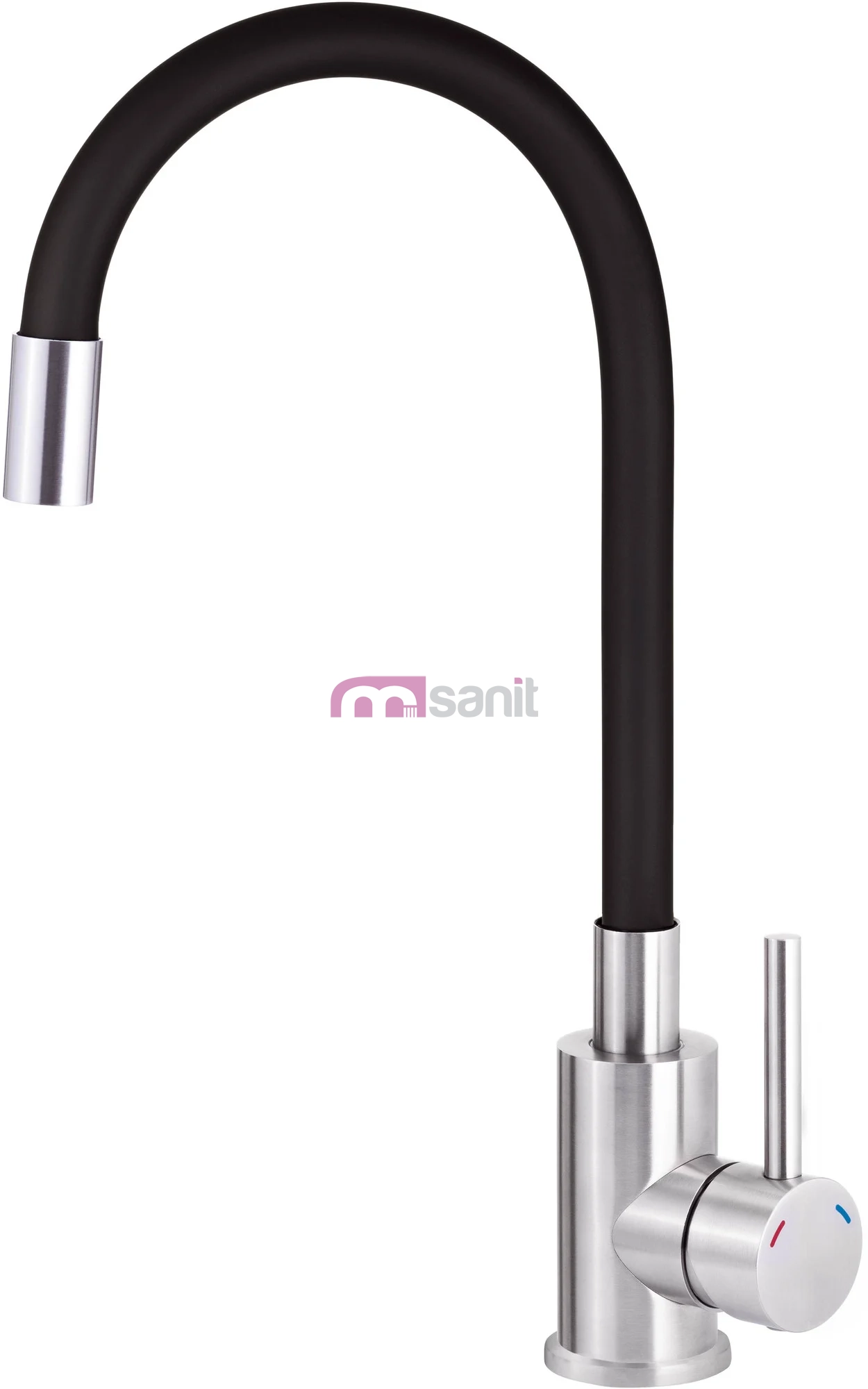 Nowoczesna bateria kuchenna z elastyczną wylewką, umożliwiającą swobodne manewrowanie strumieniem wody. Wykonana z wysokiej jakości materiałów, zapewnia trwałość i elegancki wygląd.
