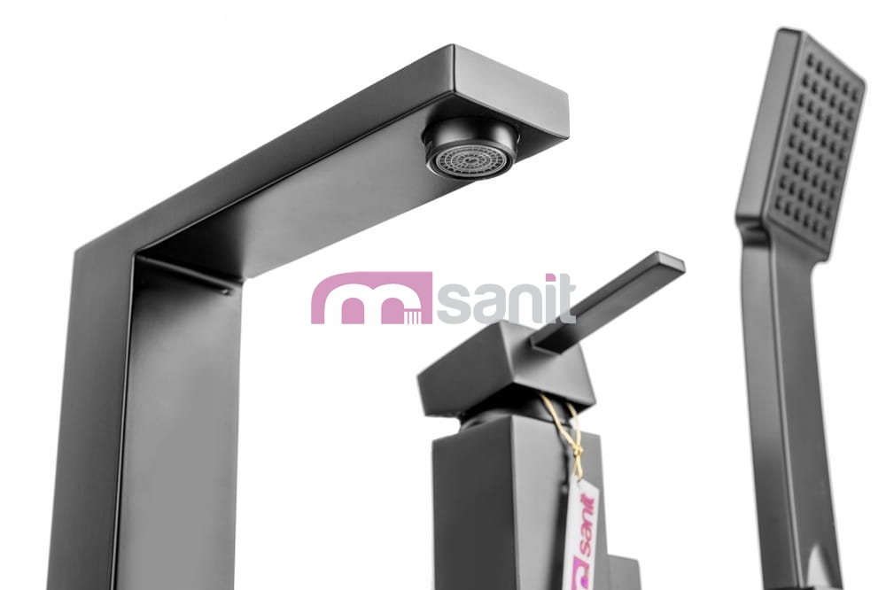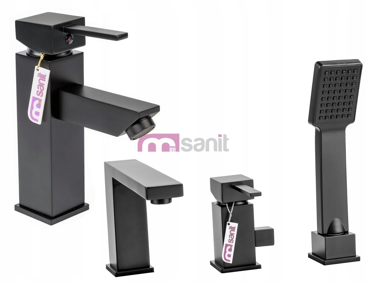 Zestaw CARO BLACK bateria wannowa 3-otworowa w kolorze czarnym + bateria umywalkowa