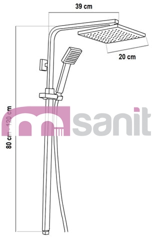 - W komplecie: deszczownica, zestaw prysznicowy, mocowanie, wąż podłączeniowy baterii