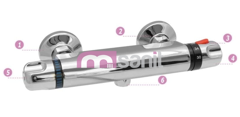 - Elementy baterii wykonane z mosiądzu - najtrwalszego materiału, a także specjalna powłoka wykończenia gwarantuje wysoką higieniczność.