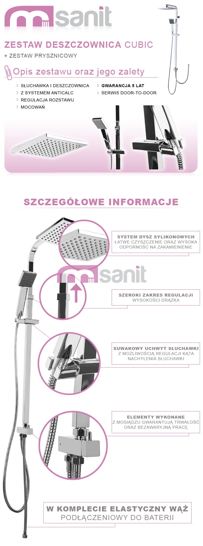 - W komplecie: zestaw natryskowy, mocowanie, uszczelki, instrukcja montażu