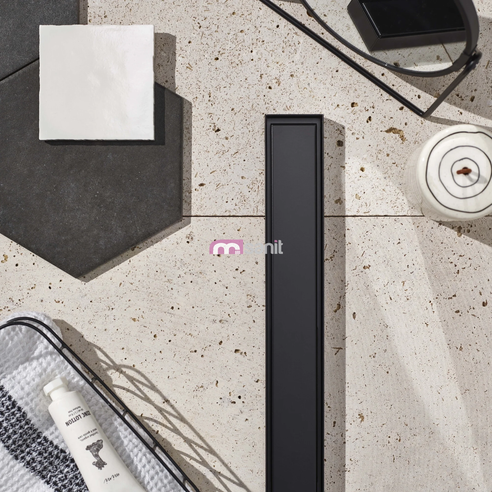 Odpływ liniowy Venisio Slim+ 500 mm to połączenie nowoczesnego wzornictwa z doskonałą funkcjonalnością. Wyjątkowy czarny matowy wykończenie nadaje mu elegancki wygląd, który świetnie komponuje się z nowoczesnymi aranżacjami łazienek.