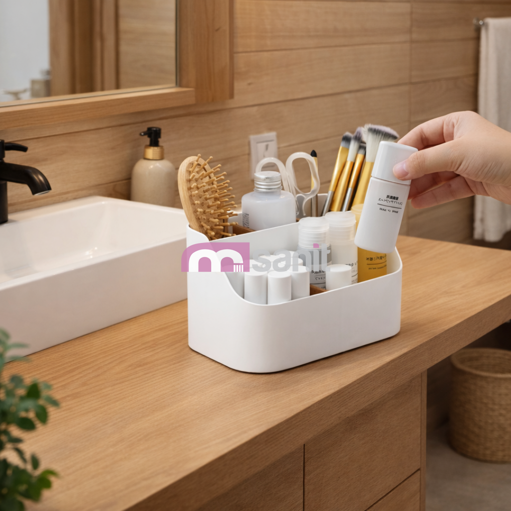 na blacie łazienkowym – przechowywanie codziennych kosmetyków