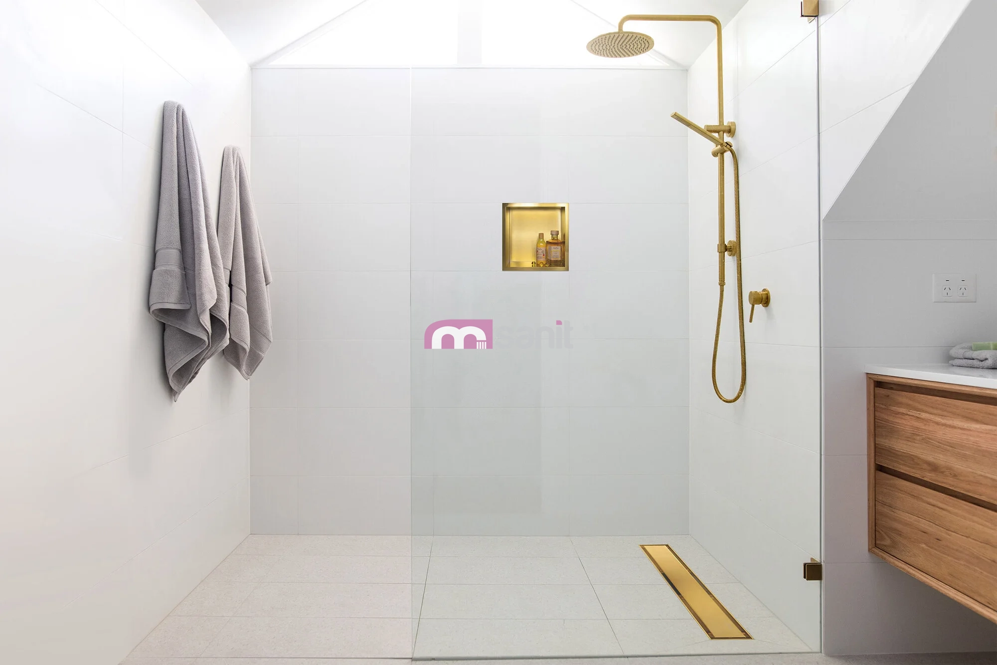 - Złoty kolor dodaje łazience luksusowego charakteru.