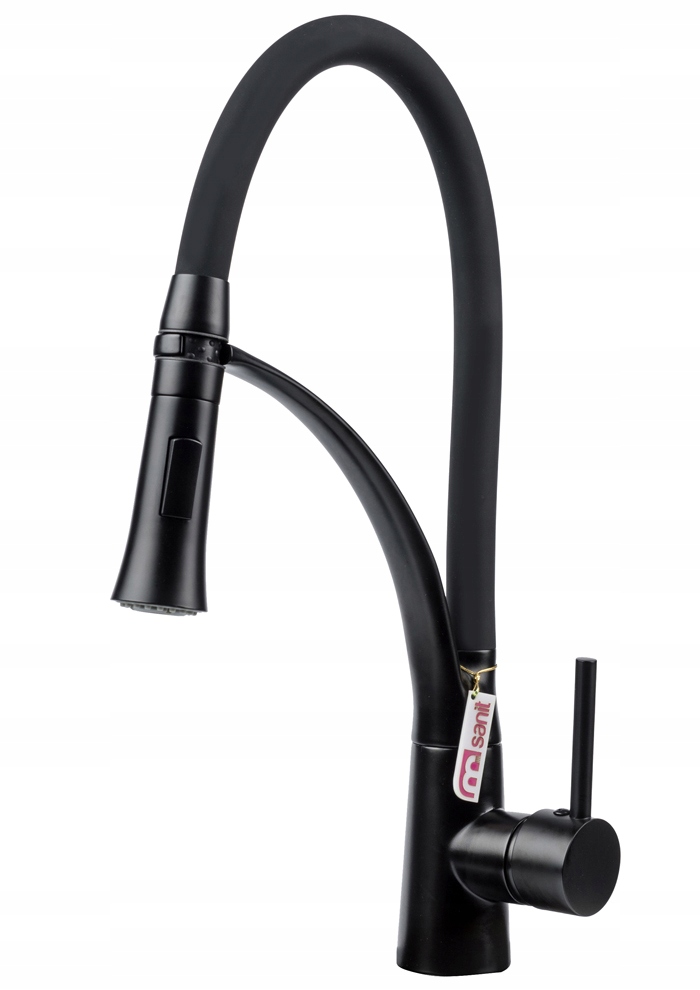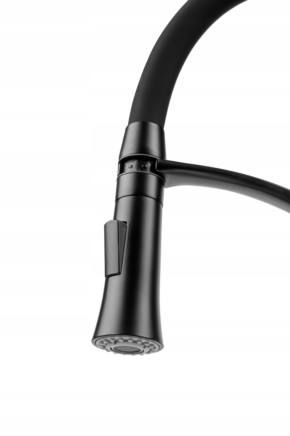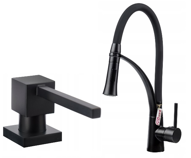 BLACK bateria kuchenna z wyciąganą wylewką w kolorze czarnym mat + dozownik płynów