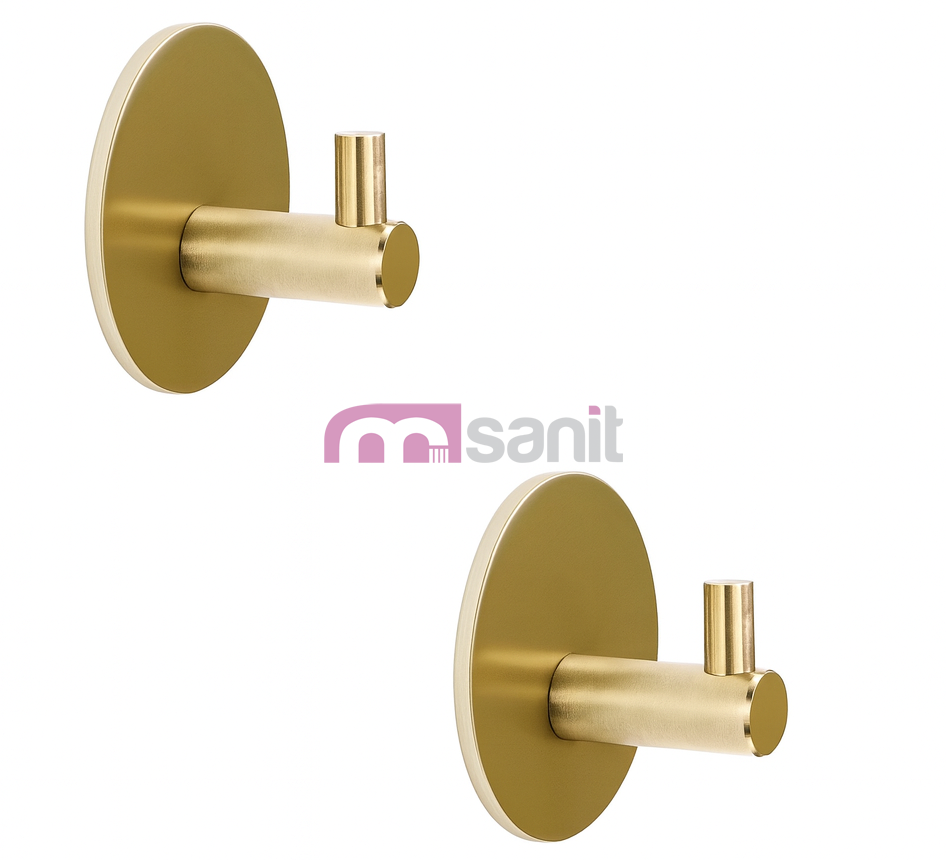 Dodaj elegancję i porządek w łazience bez jednej dziury w płytkach. Zestaw 2 metalowych haczyków w kolorze złotymmontowanych na mocną taśmę samoprzylepną. Idealne na ręczniki, szlafroki, ściereczki czy akcesoria. Smukła forma i satynowe wykończenie pasują do stylu modern, glam i scandi.