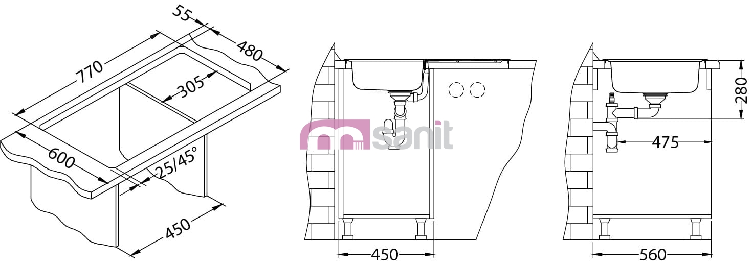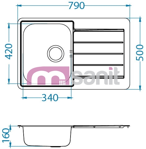 LINE 80 SAT Standard 79x50 1k zlew wpuszczany z odpływem zatyczkowym fi114 z syfonem