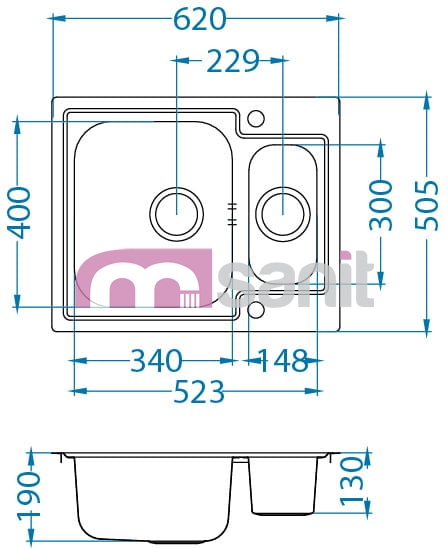 Wymiary zlewozmywaka: 620x505