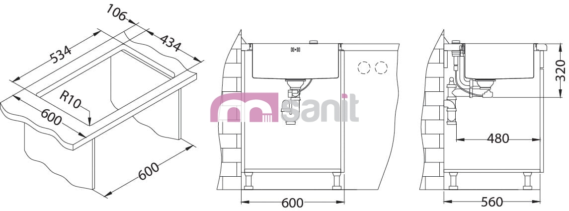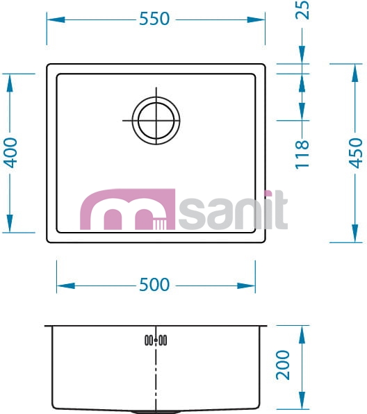 Wymiary zlewozmywaka: 550X450X200