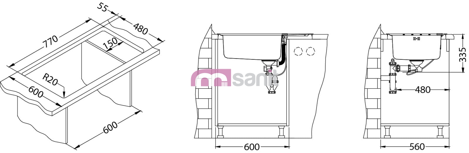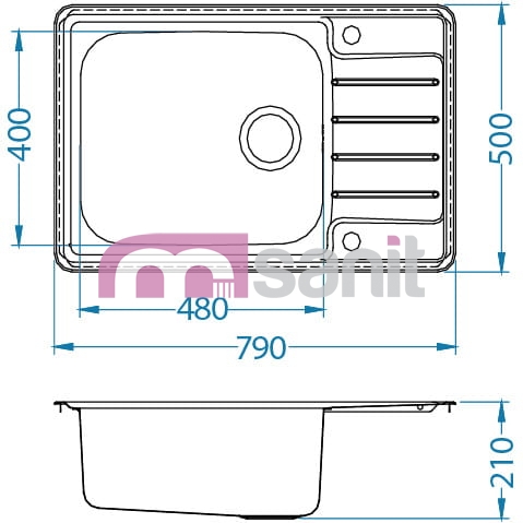 PRAKTIK 120 SAT 79x50 1K zlew wpuszczany, odpływ POP-UP z syfonem