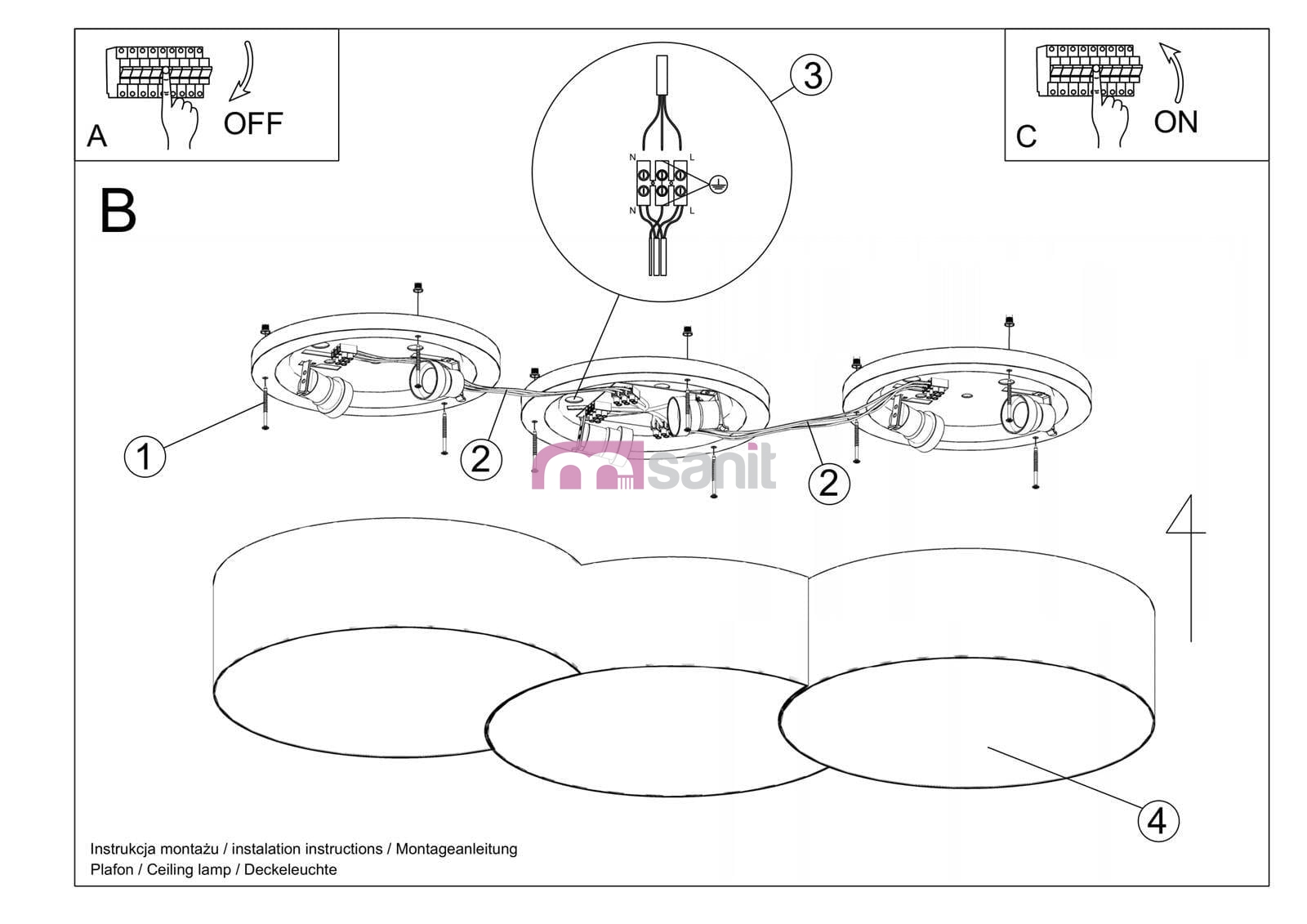 CIRCLE jest dostępny w kilku wersjach: zarówno jako pojedynczy plafon, jak i w niebanalnej aranżacji - harmonijnym połączeniu 2, 3 lub 4 plafonów w wyjściowej postaci. Lampy idealnie do siebie przylegają, tworząc źródło światła, które z powodzeniem rozświetli nawet duże pomieszczenia.