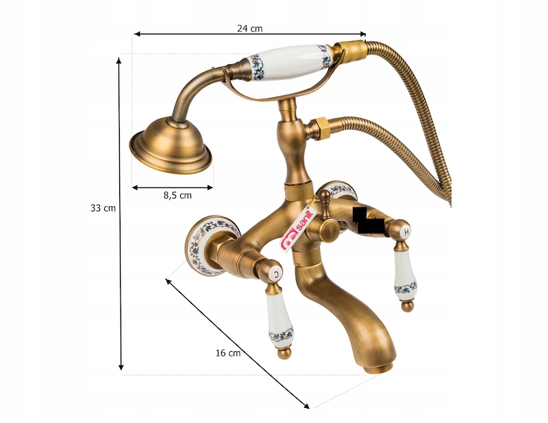 - bateria wykonana z mosiądzu, pokryta 4-krotną powłoką w kolorze stare złoto
