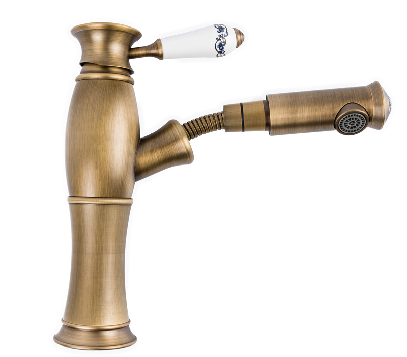 Bateria umywalkowa w stylu RETRO z wyciąganą wylewką stare złoto / mosiądz