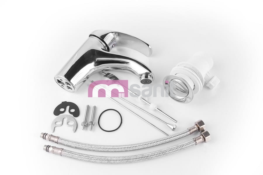 - W komplecie: korek automatyczny, wężyki podłączeniowe wody 3/8", mocowanie, uszczelki, instrukcja montażu