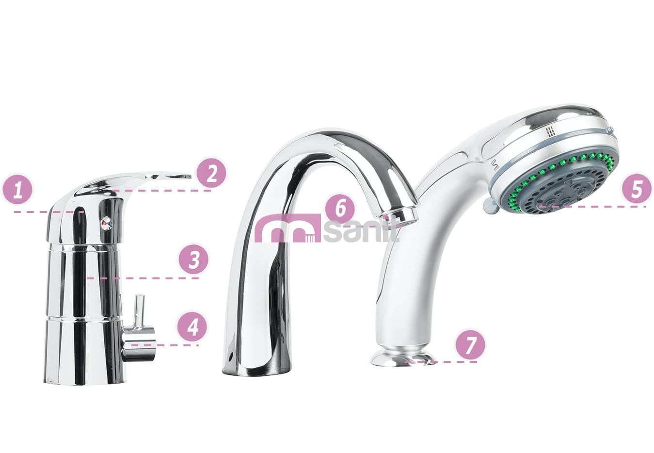 - W komplecie: bateria, zestaw prysznicowy, mocowanie, uszczelki, instrukcja montażu
