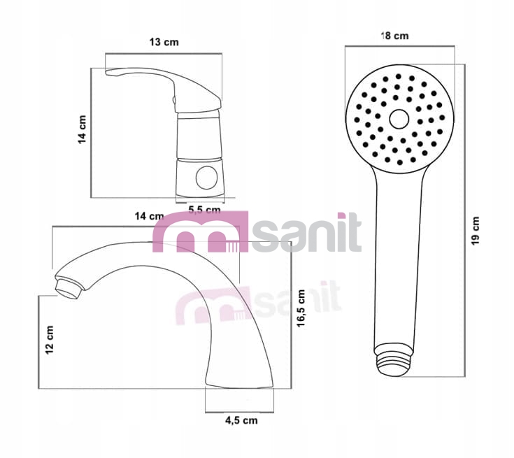- Wysokość wylewki: 16,5 cm