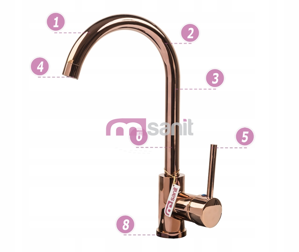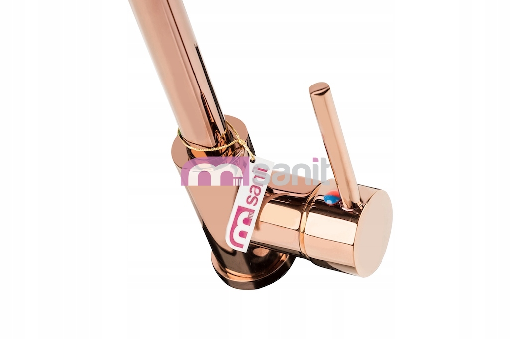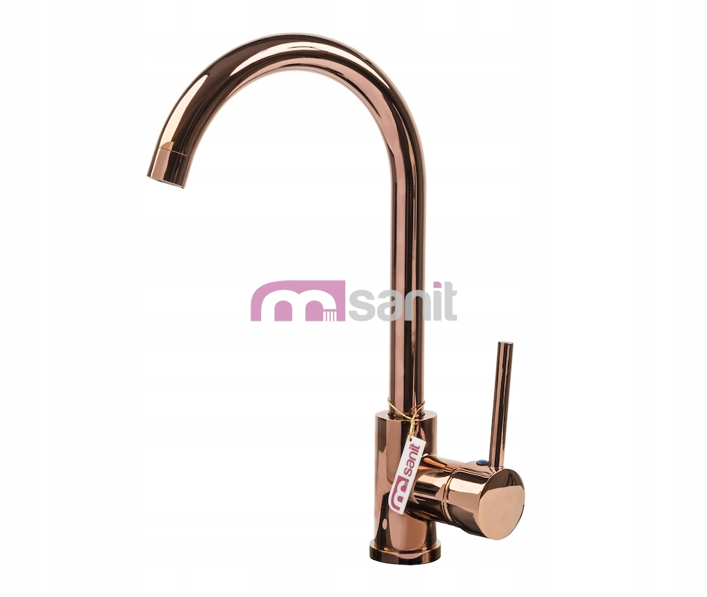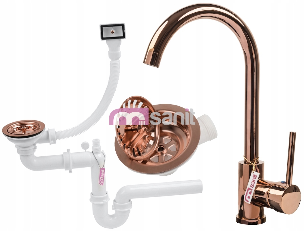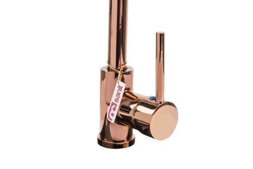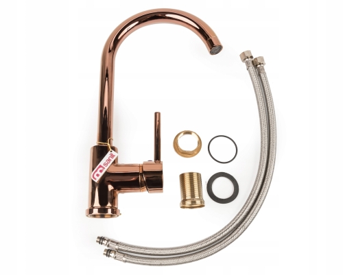 STEEL - bateria kuchenna w kolorze miedzianym/różowe złoto + odpływ do zlewu + stalowe sitko wykonane w technologii PVD w kolorze miedzianym/różowe złoto