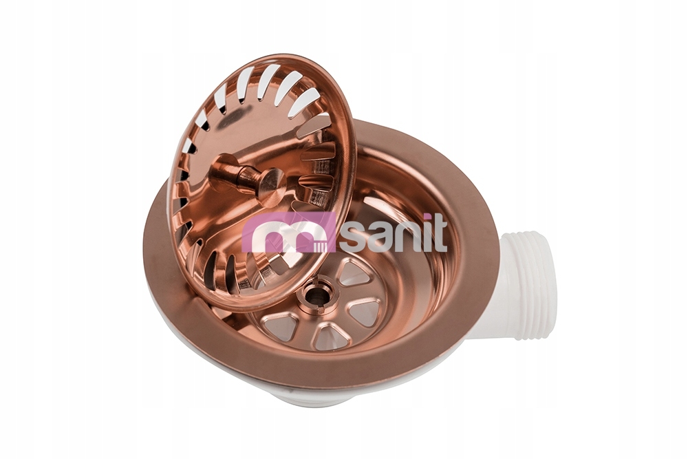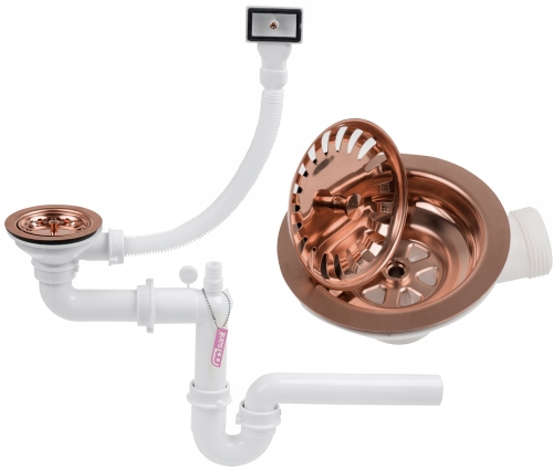 Syfony wyposażone są w pojemnościowy odpływ o średnicy 3,5" z dużym stalowych sitkiem w kolorze złotym lub miedzianym.