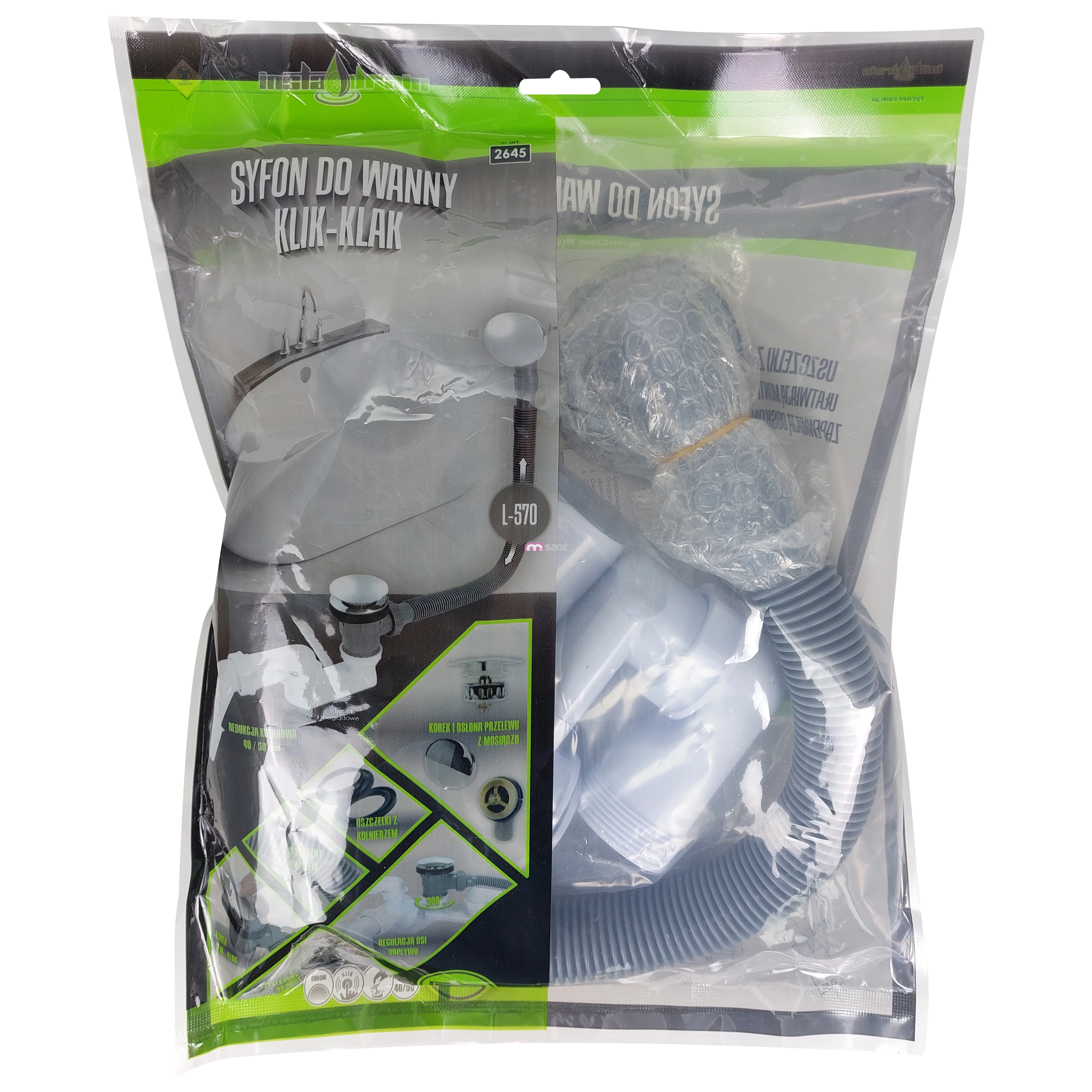 Syfon wannowy chromowany Klik-Klak, czyszczony od góry
