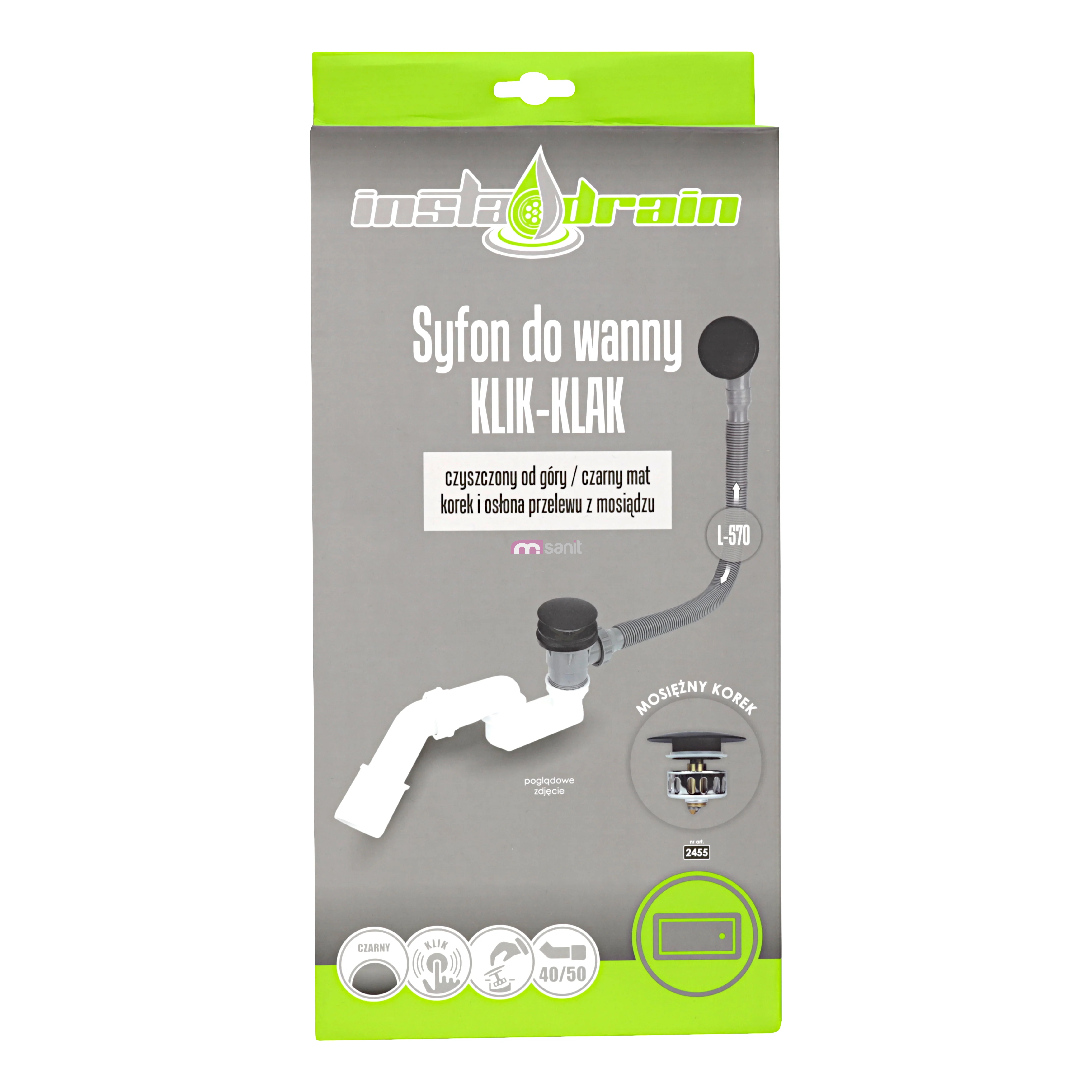 - Kompatybilny z wannami o średnicy odpływu 50 mm.
