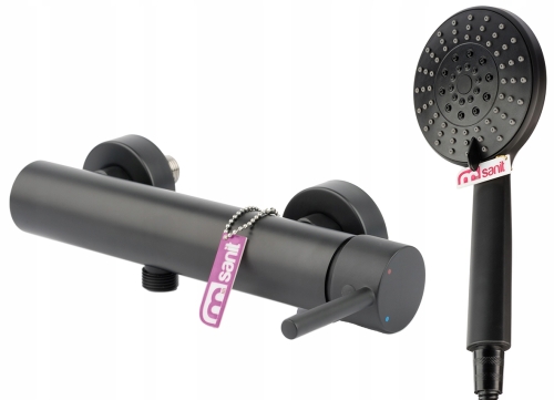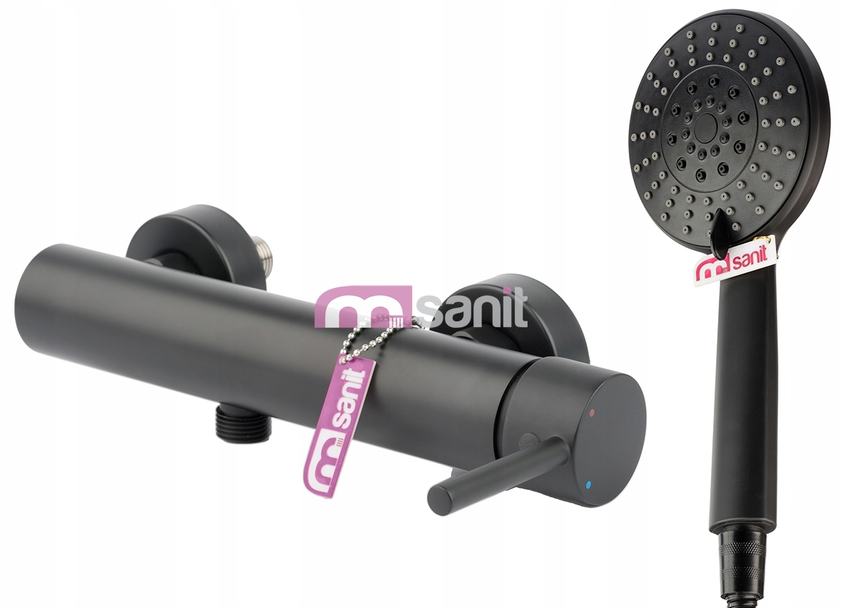 TUBE - bateria prysznicowa w kolorze czarnym + zestaw natryskowy