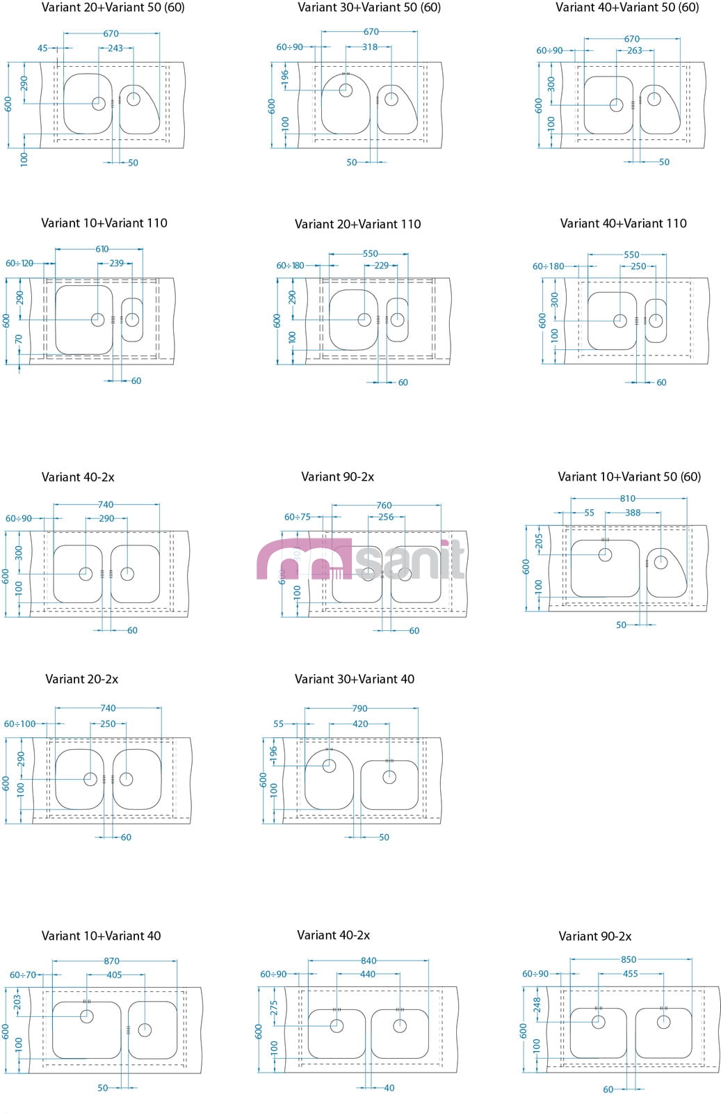 VARIANT 40 SATYNA 34x40 komory podwieszane, D - odpływ przy dłuższym boku komory