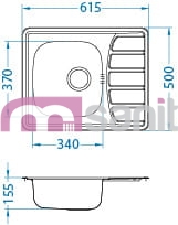 ZOOM 10 SAT 61,5x50 1K zlew wpuszczany + odpływ zatyczkowy z syfonem