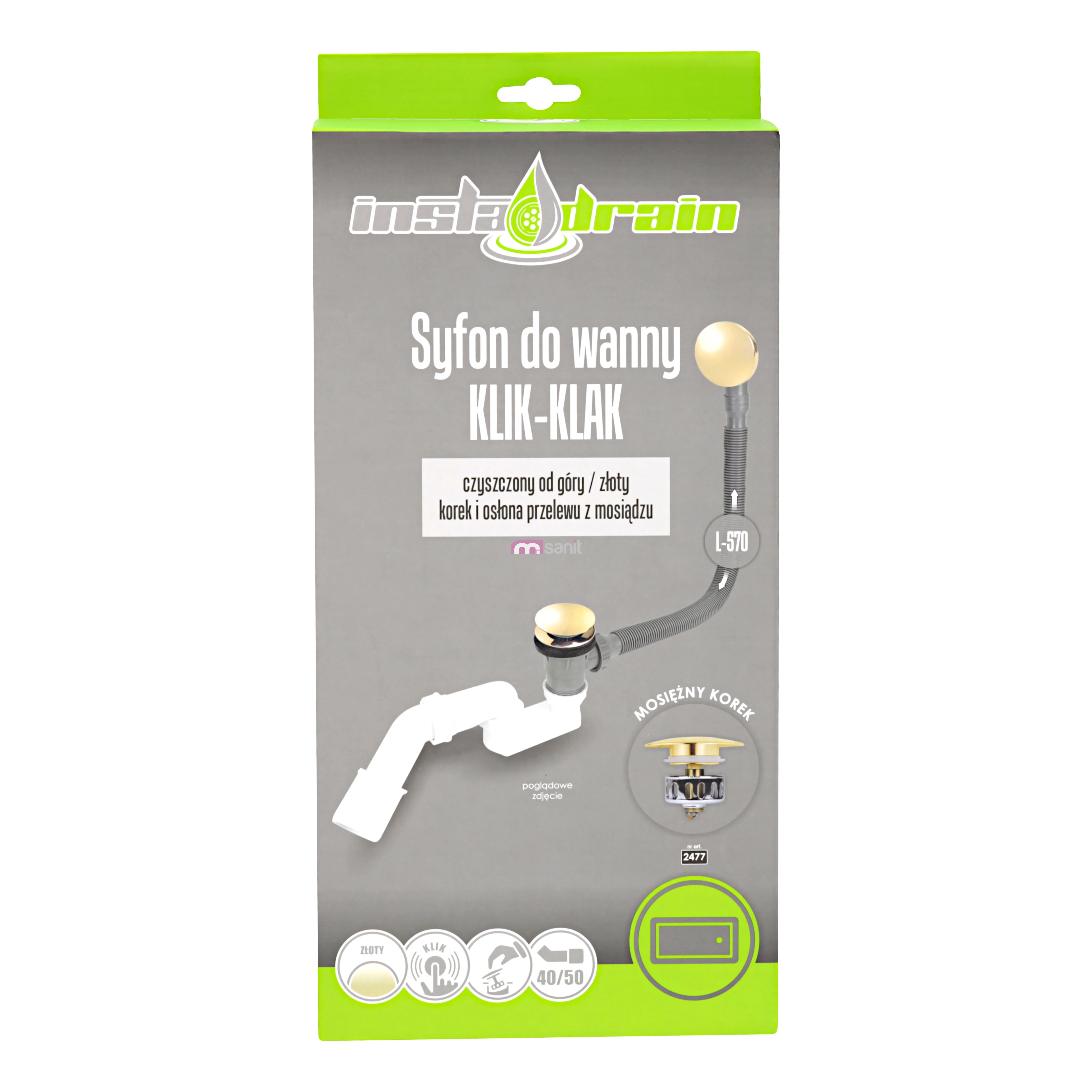 Złoty syfon wannowy klik-klak 50 mm – łatwe czyszczenie od góry
