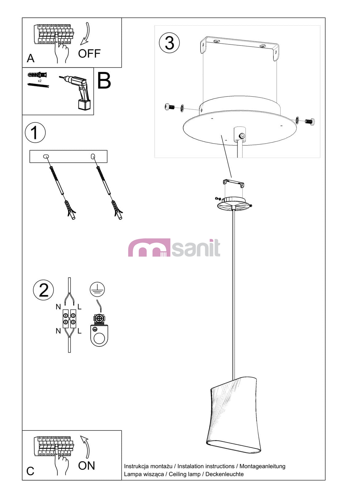 Lampa wisząca czarna/biała BLUM